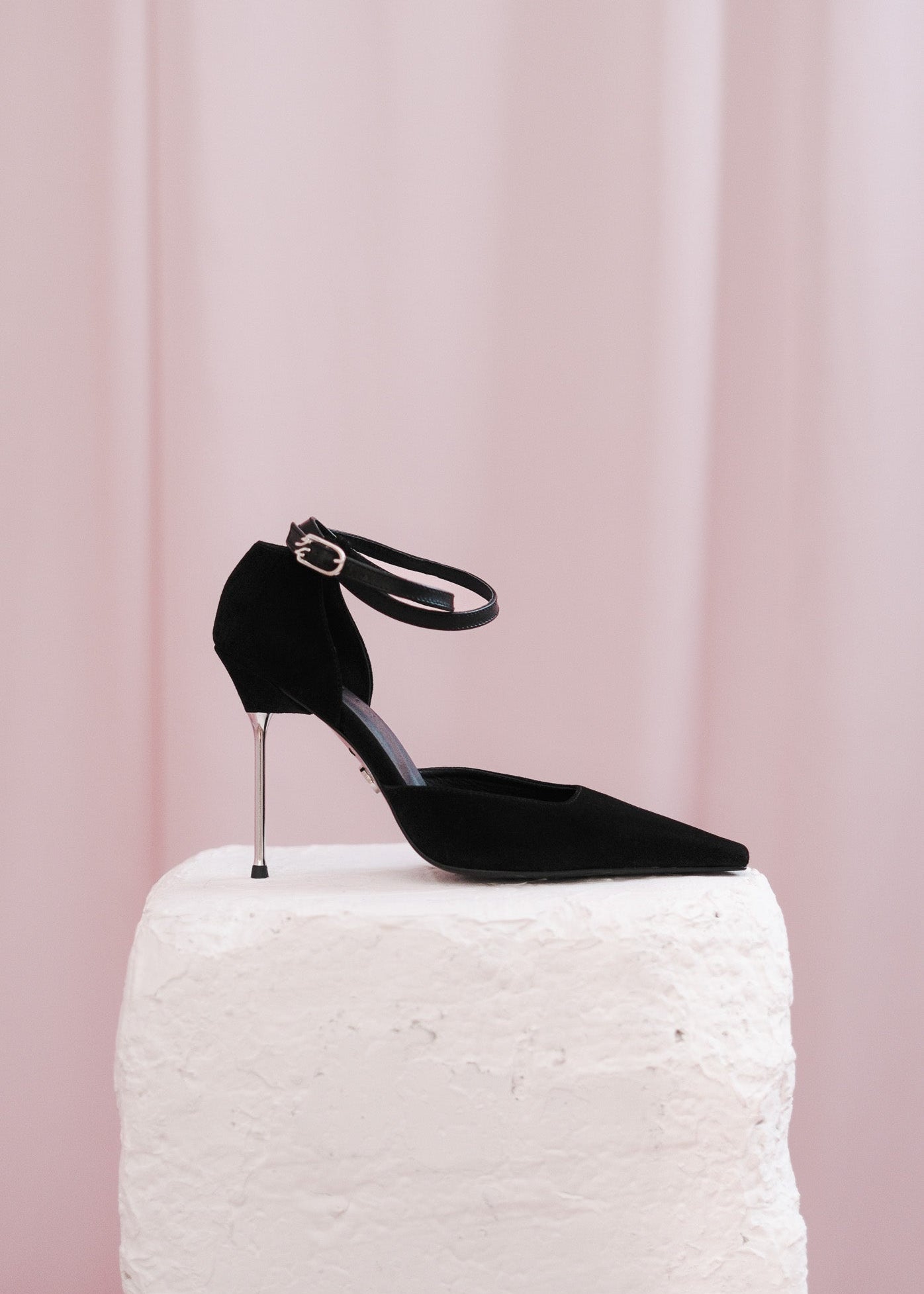 SIENNA BLACK LEATHER AND MESH PUMPS
