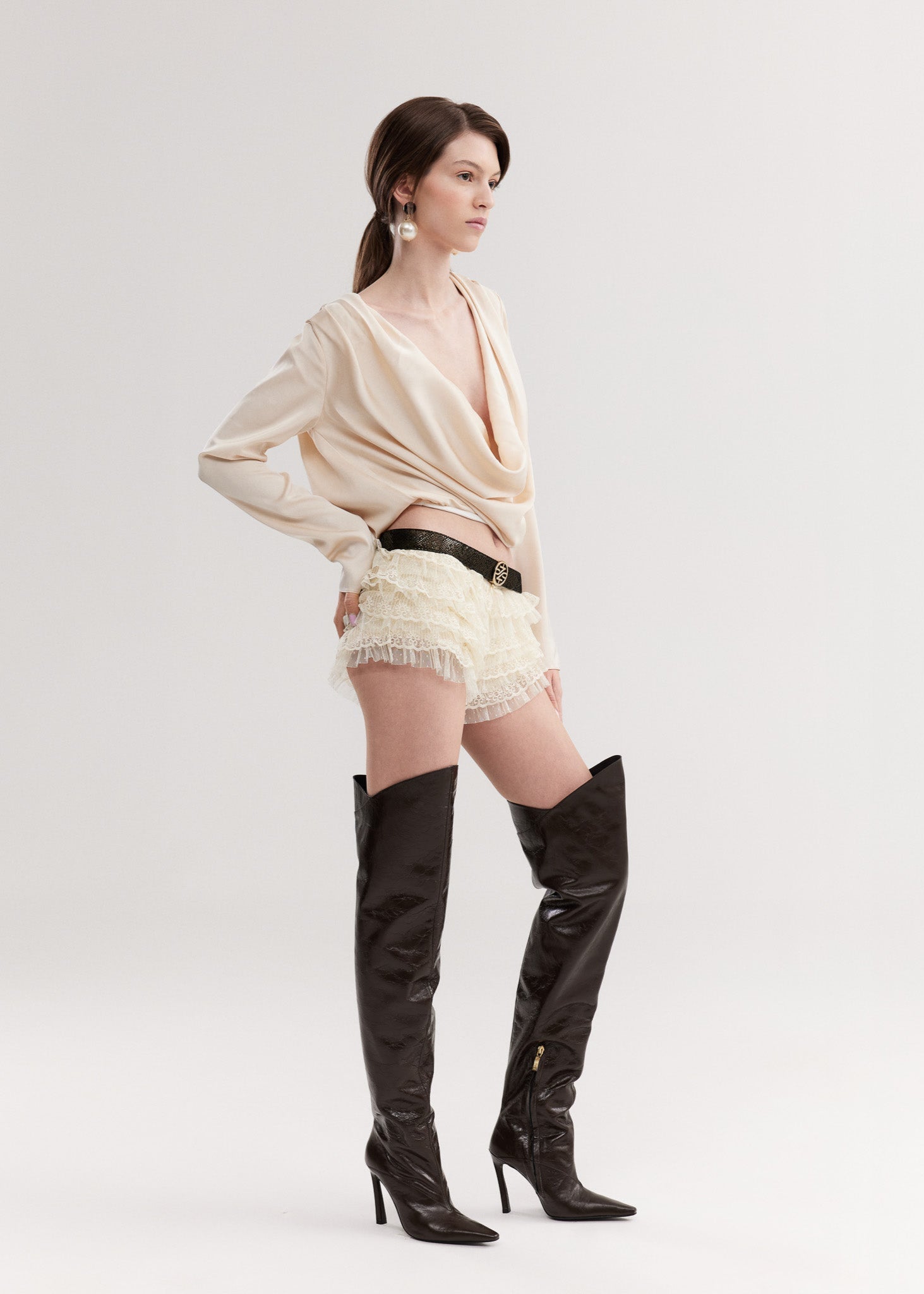 NADIA BROWN WRINKLED NAPPA OVER KNEE BOOTS