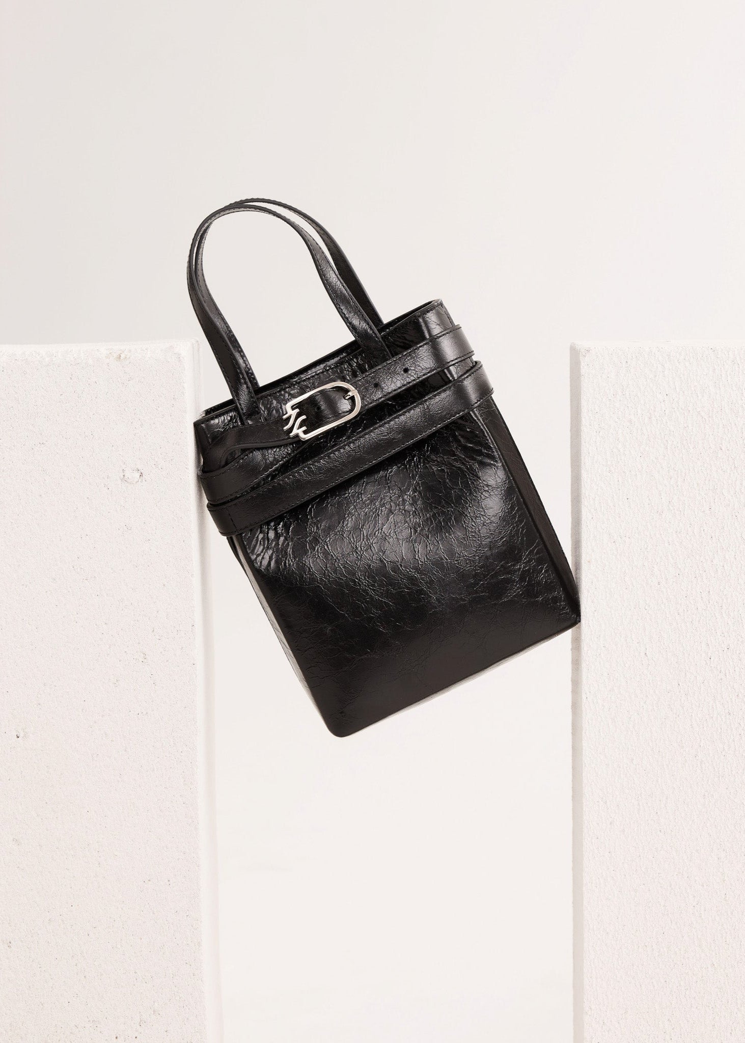 DALIA BLACK SEMI PATENT LEATHER SHOULDER BAG