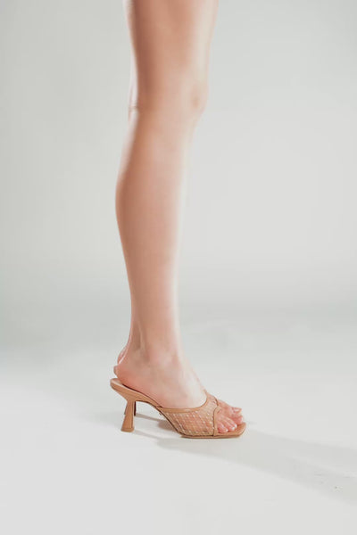 REY NUDE LEATHER AND DIAMOND MESH MULES