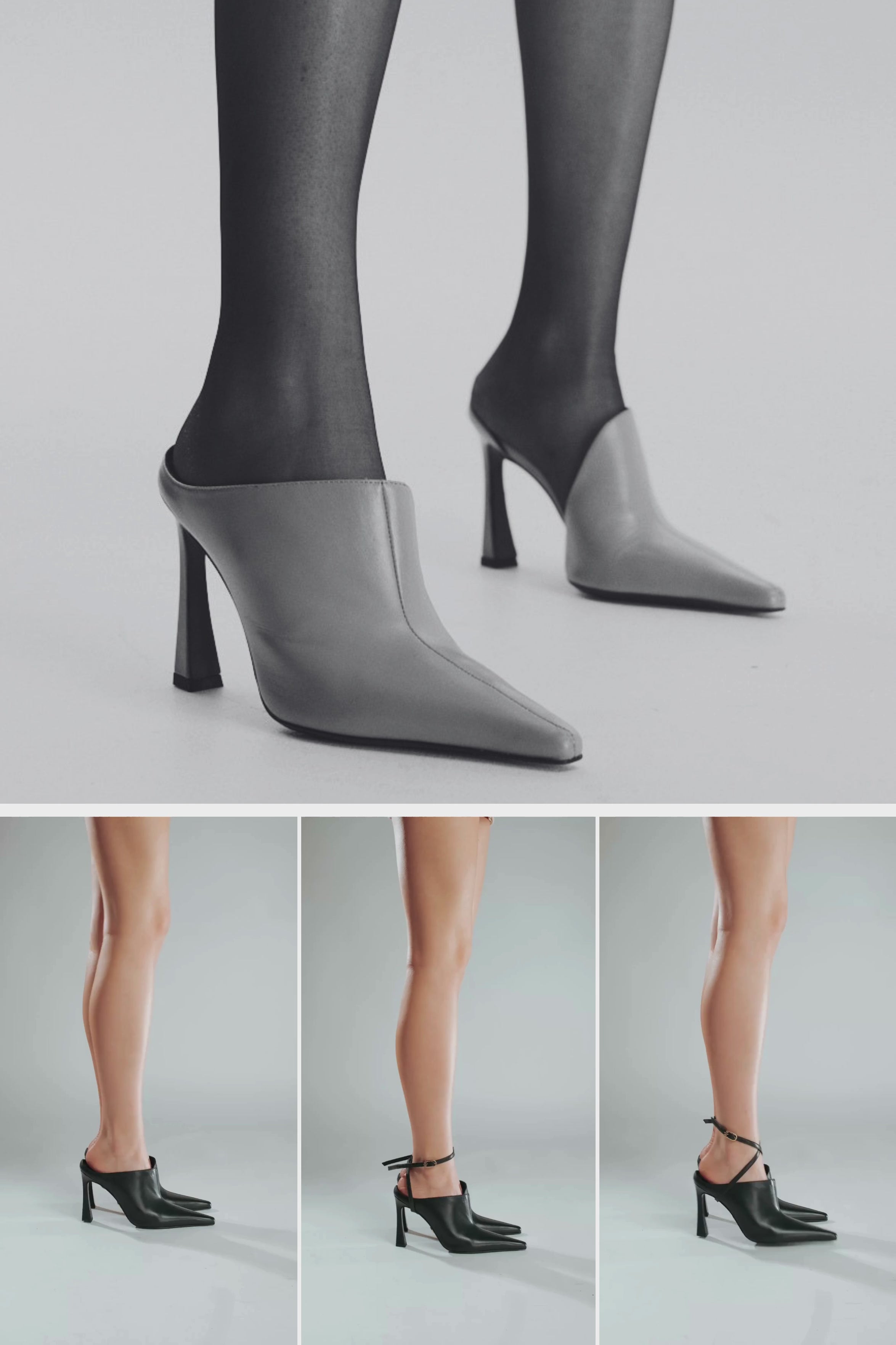 Comes with a detachable strap that can be styled across the front, wrapped at the ankle, or removed entirely for a clean, uninterrupted silhouette.